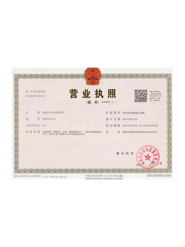 福建延年藥業(yè)有限公司位于福州市閩清縣城關(guān),工廠坐落在風(fēng)景秀美的梅城森林公園山腳下,公司前身是中國(guó)人民解放軍第9747工廠,創(chuàng)辦于1970年9月,隸屬南京軍區(qū)總后勤部,企業(yè)的地方名稱(chēng)為福建閩清制藥廠。1998年6月為貫徹中央關(guān)于軍隊(duì)不再?gòu)氖陆?jīng)商活動(dòng)的決議,企業(yè)軍轉(zhuǎn)地改制移交地方,2001年9月企業(yè)改制,更名為福建延年藥業(yè)有限公司。
